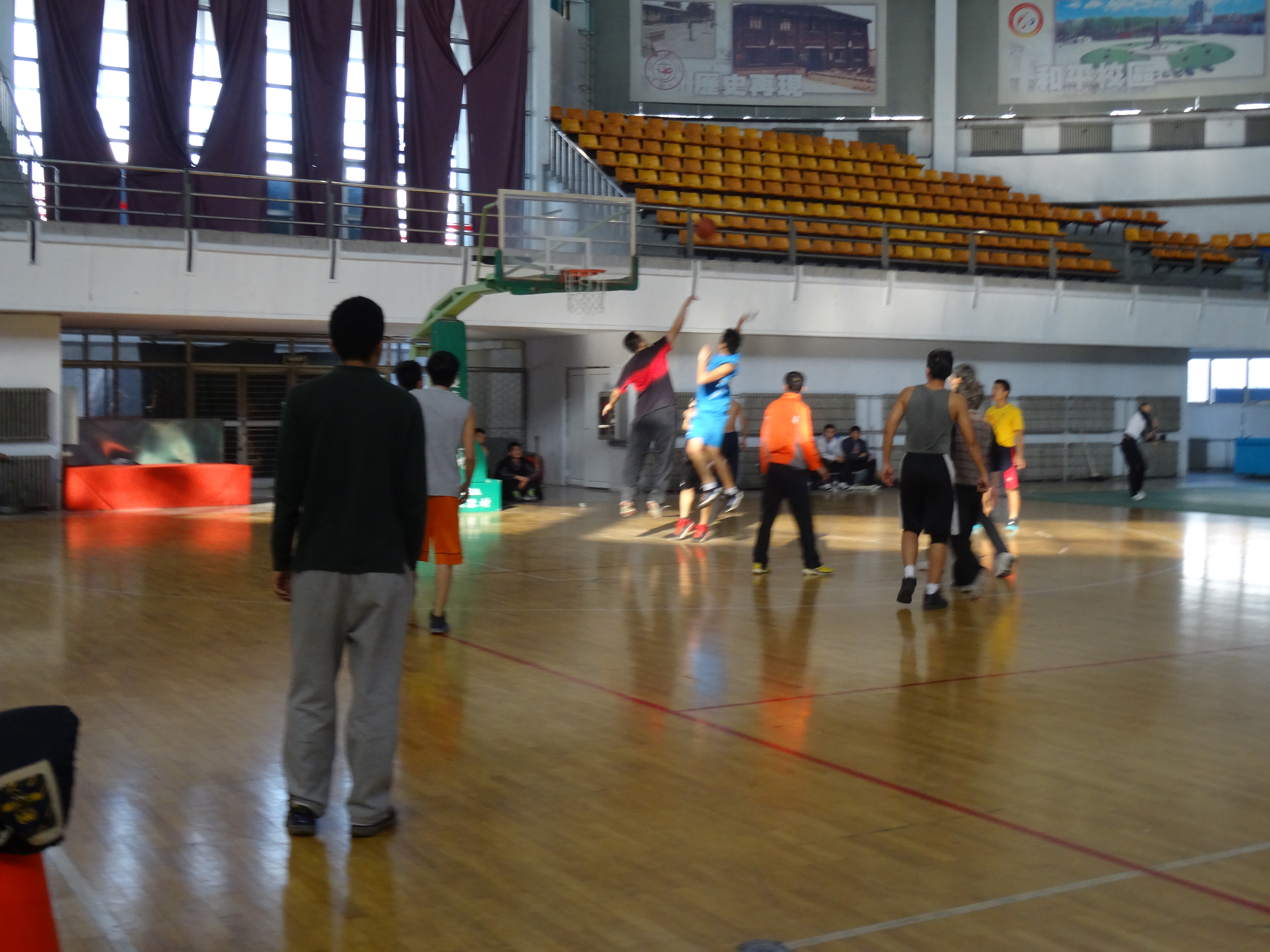 虽然经过一上午学习后,比赛正值中午,可是大家却丝毫没有疲劳感,充沛的体力、积极的状态使同学们对这场篮球对抗赛充满了期待,参赛队员做了热身准备活动后,于12点20分准时开赛。