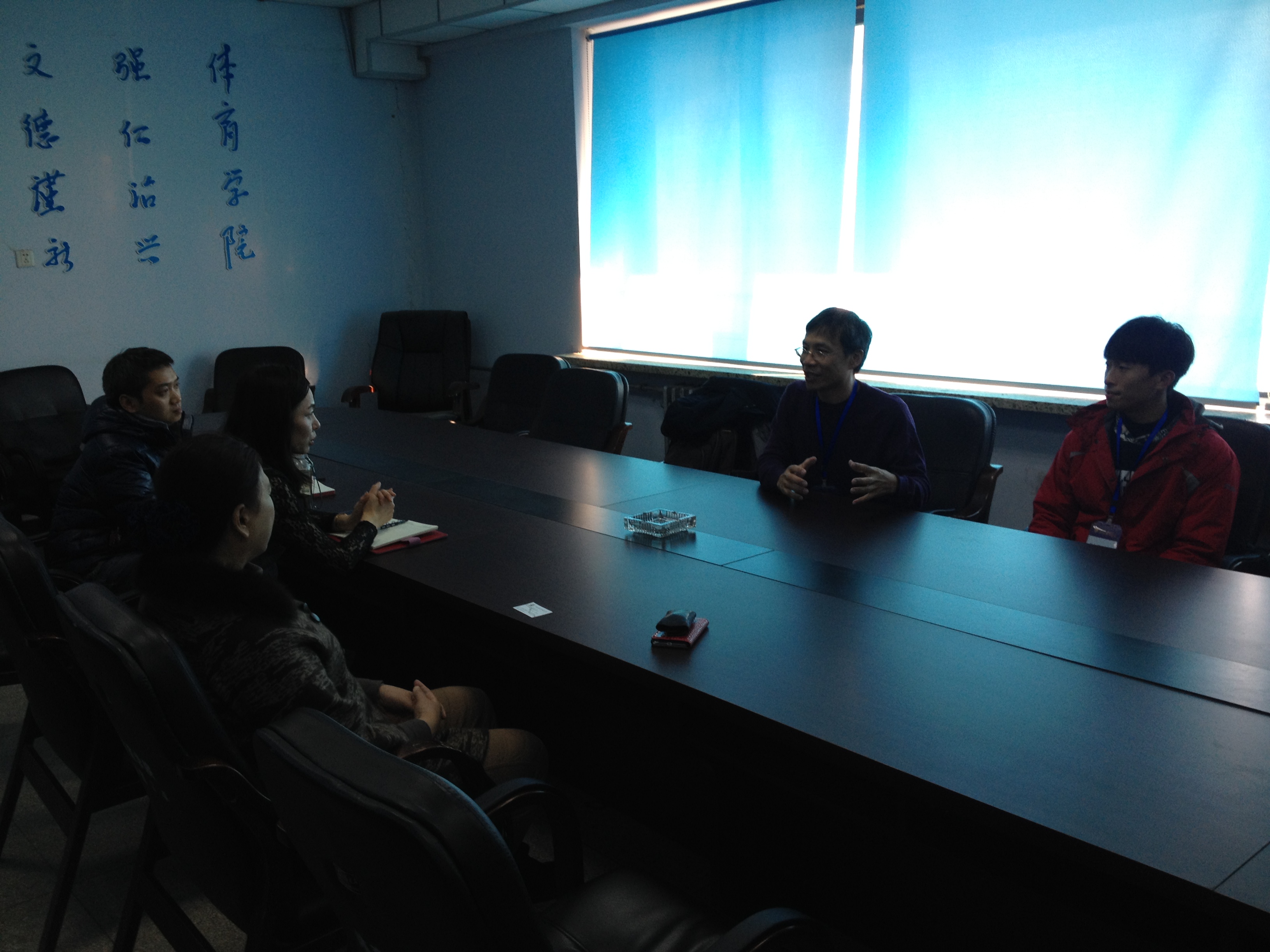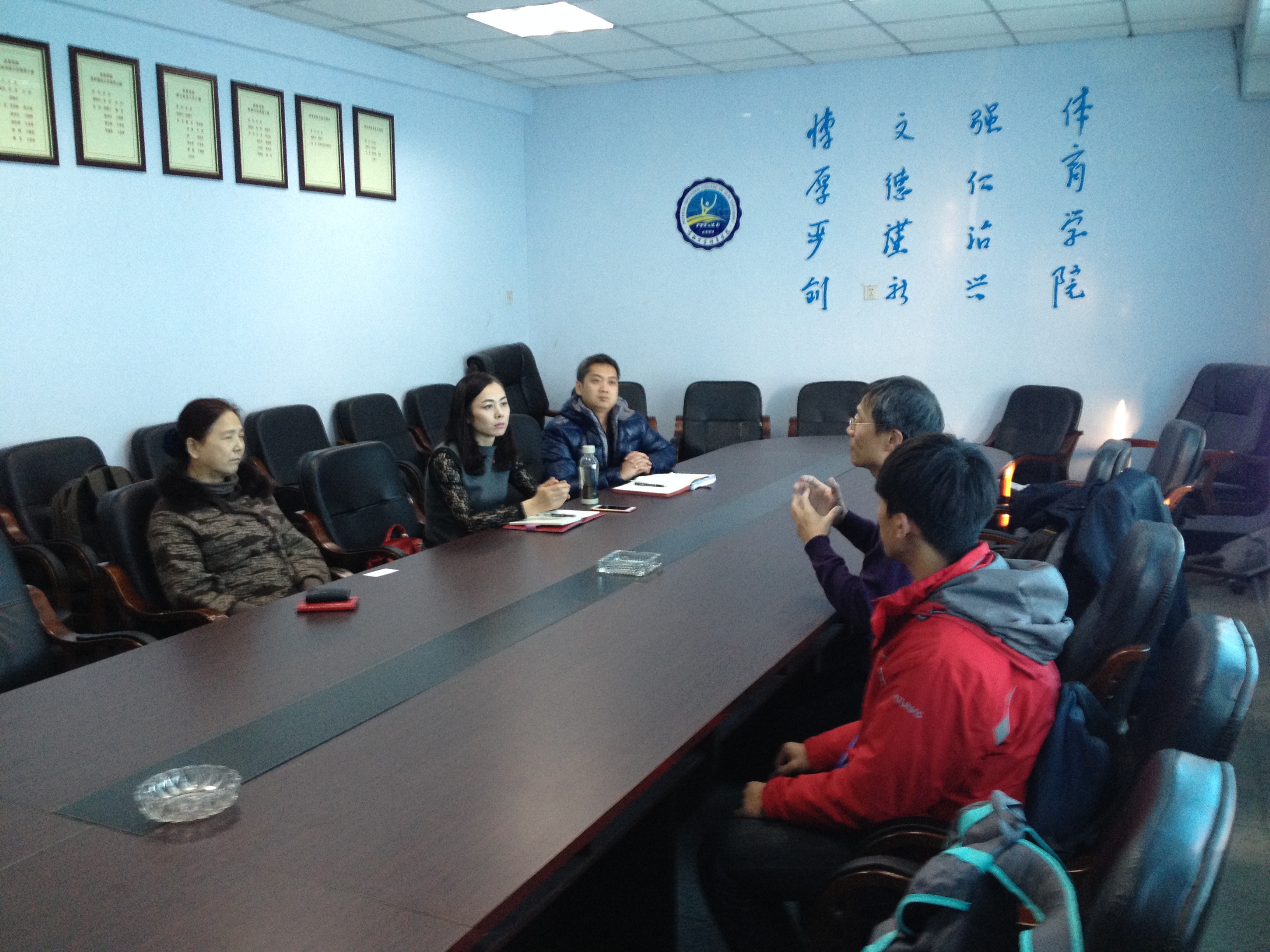 副院长孙茹博士,体育理论教研室主任郭玉莲副教授、外事秘书张毅副教授及专业课教师任庆伟博士于禁漫