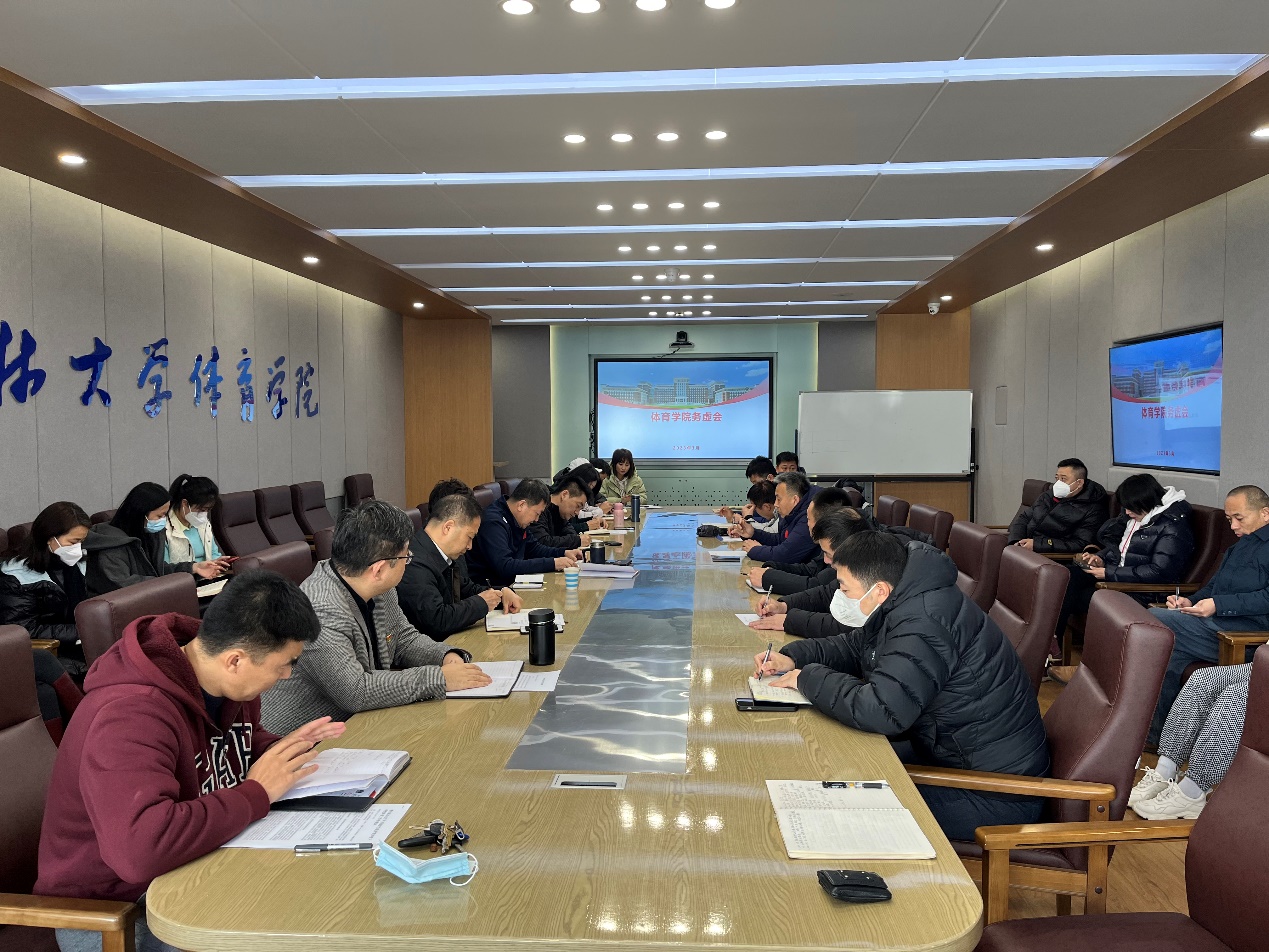 学科特点。他表示务虚会既要务虚也要务实,要通过本次务虚会加强六个方面的工作目标。1、加强校园体育文化建设。2、以师生健康为目标,多样化发展群众体育活动,形成以身体健康、心里健康、社会适应能力、道德修养多维度育人的培养模式。3、搭建多学科交叉融合的学术平台,提升学术增长点,加快推进体育学学科一级博士点建设。4、提升教师整体综合素养加强师德师风建设、加强教师专业素养提升,不断提升教学质量。5、教管结合、明确目标,培养高质量的专业体育人才。6、加强优秀教练员、运动员、裁判员的培养,高质量完成本年度的各项赛事,继续推进为校争光的工作目标。
